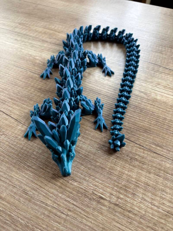 ✨ Kristalldrache – 3D-gedruckter, beweglicher Flexi Dragon (60 cm) Dieser beeindruckende Kristalldrache aus dem 3D-Drucker ist ein echtes Highlight für Fantasy-Fans, Gamer und Sammler. Mit einer Länge von ca. 60 cm und seinen beweglichen, flexiblen Gliedern ist er nicht nur eine außergewöhnliche Dekofigur, sondern auch ein faszinierbares Fidget-Spielzeug für Erwachsene und Kinder (unter Aufsicht). Der Drache besteht aus hochwertigem, langlebigem PLA und hat die typische kristallartige Struktur, die ihm einen magischen, einzigartigen Look verleiht. Perfekt als Geschenk oder Blickfang in jedem Zimmer!